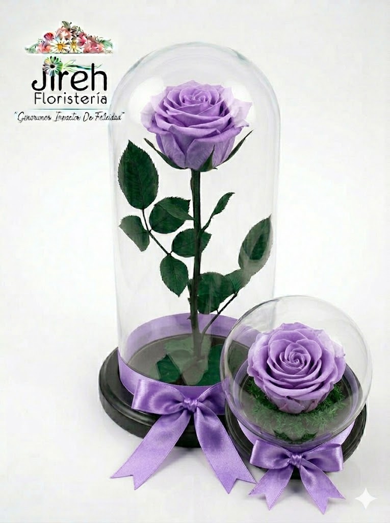 Cúpula de Cristal de Alta Claridad: Protege la integridad de la flor mientras resalta la viveza de su tallo y hojas naturales, creando un efecto de suspensión eterna.